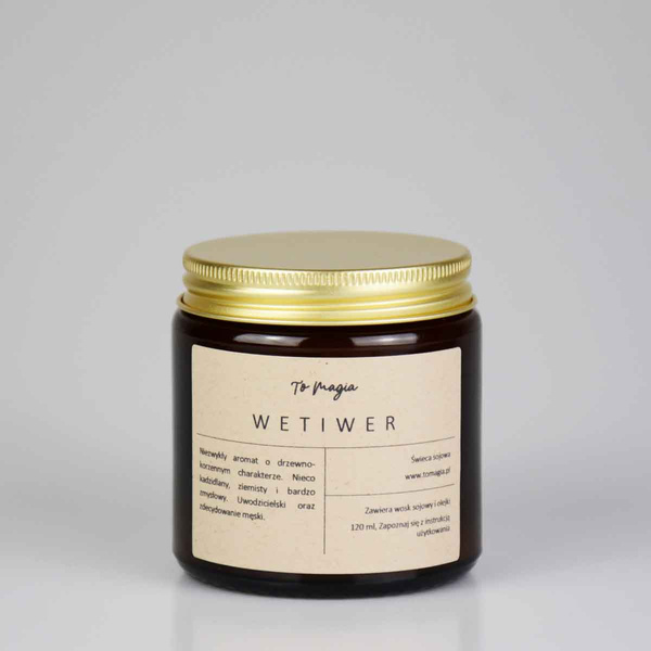 • Wetiwer – świeca o głębokim, ziemistym zapachu natury. Uziemia, uspokaja i otula spokojem. Naturalny wosk sojowy, ręczne wykonanie, magia w każdym płomieniu.